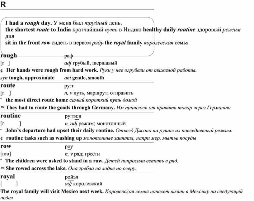 sit in the front row сидеть в первом ряду the royal family королевская семья