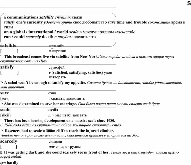 satisfy one’s curiosity удовлетворить свое любопытство save time and trouble сэкономить время и силы
