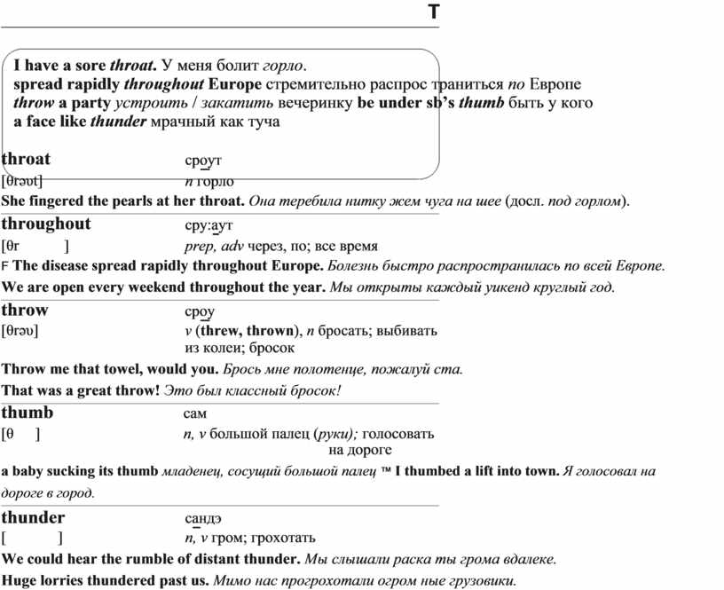 I have a sore throat. У меня болит горло.