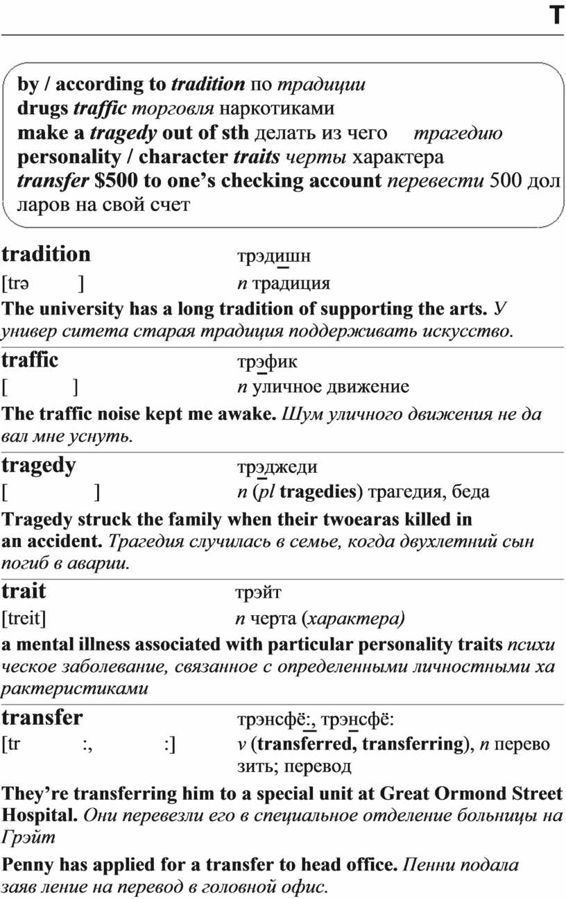 by / according to tradition по традиции drugs traffic торговля наркотиками