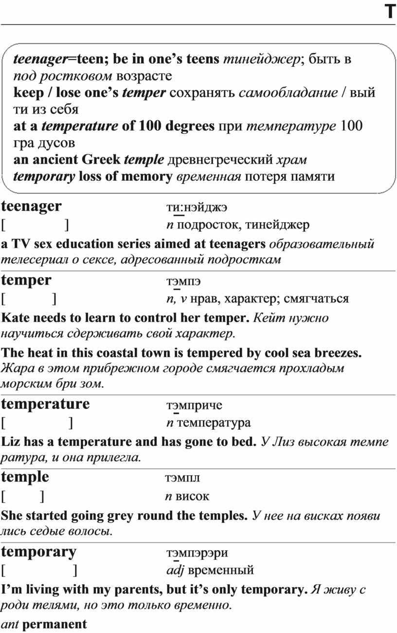 keep / lose one’s temper сохранять самообладание / вый ти из себя