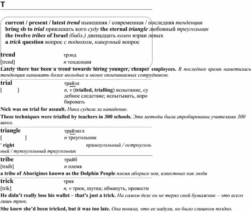 bring sb to trial привлекать кого суду the eternal triangle любовный треугольник