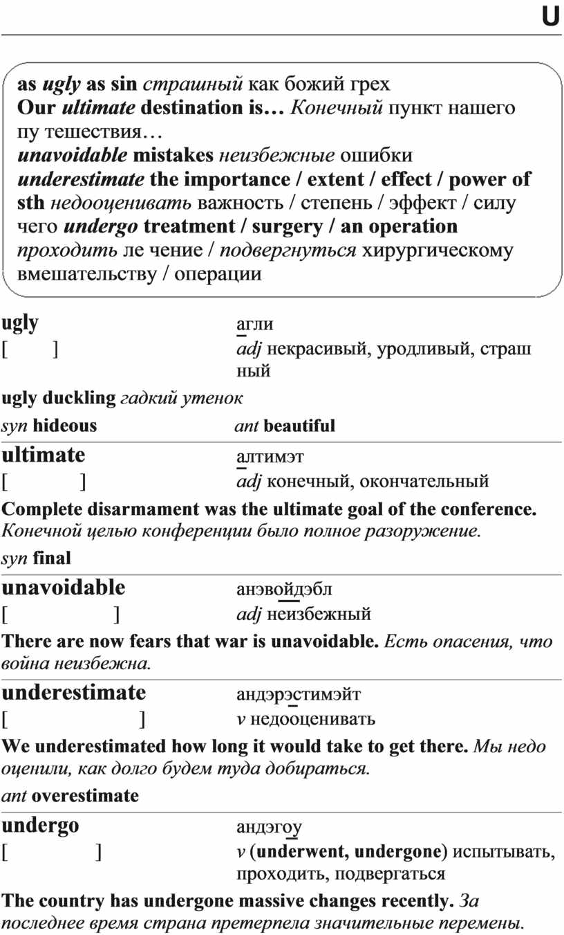 underestimate the importance / extent / effect / power of sth недооценивать важность / степень / эффект / силу чего undergo treatment / surgery / an operation проходить ле чение / подвергнуться хирургическому вмешательству / операции
