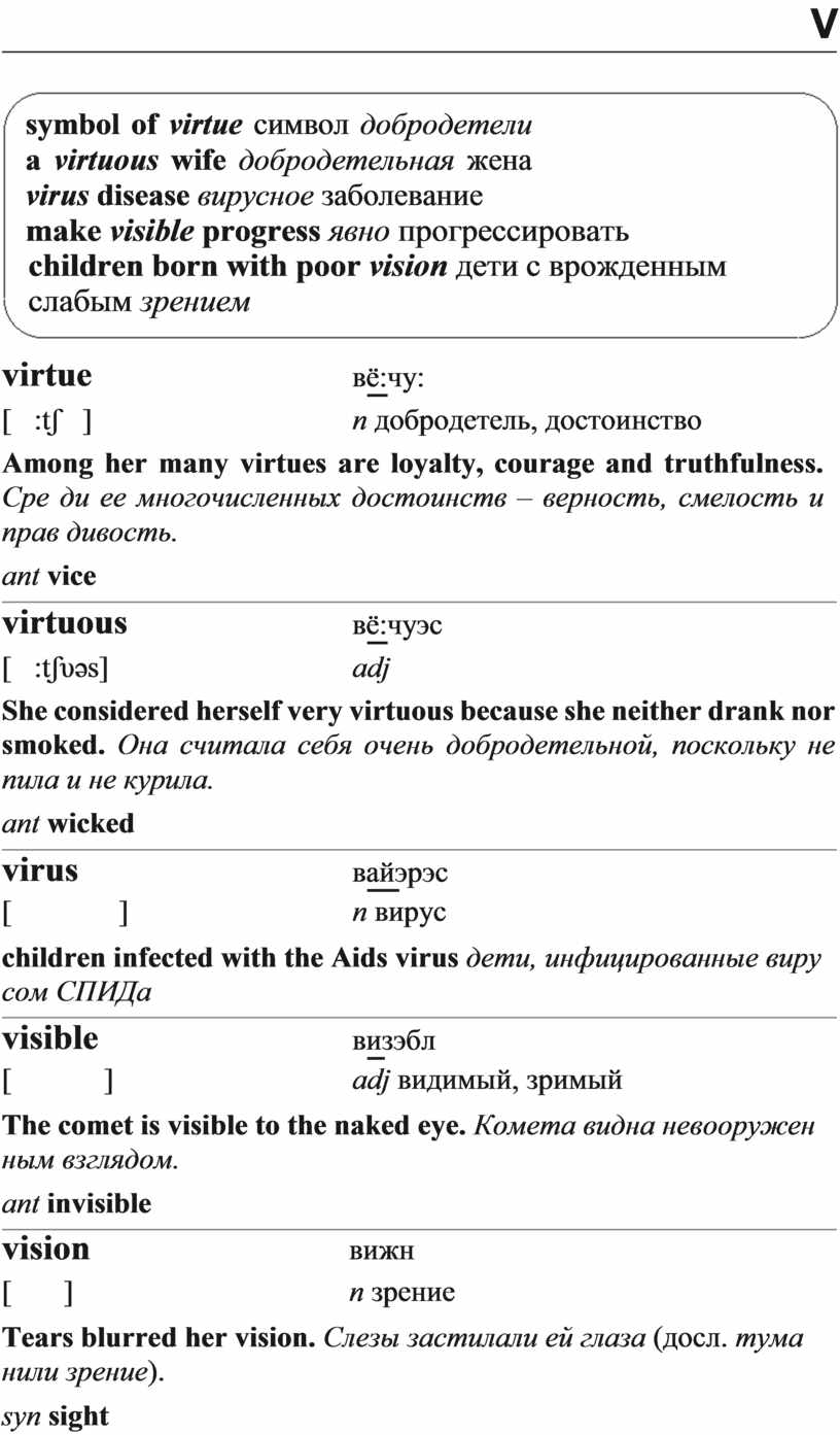 symbol of virtue символ добродетели a virtuous wife добродетельная жена virus disease вирусное заболевание
