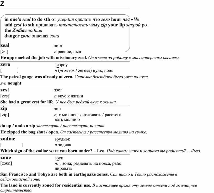 add zest to sth придавать пикантность чему zip your lip закрой рот