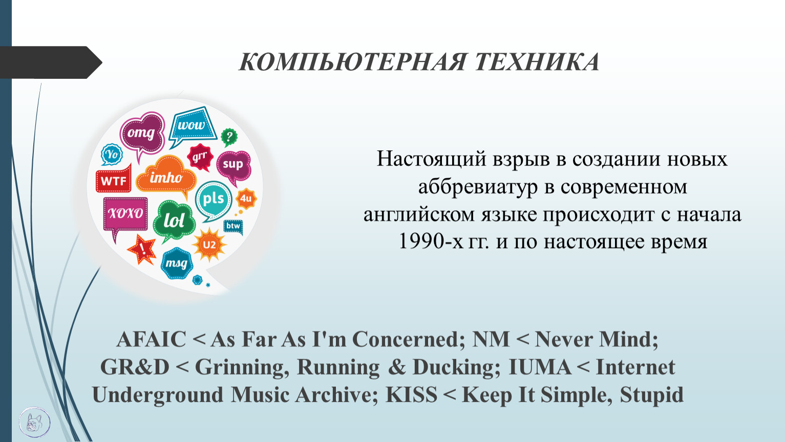 Настоящий взрыв в создании новых аббревиатур в современном английском языке происходит с начала 1990-х гг. и по настоящее время