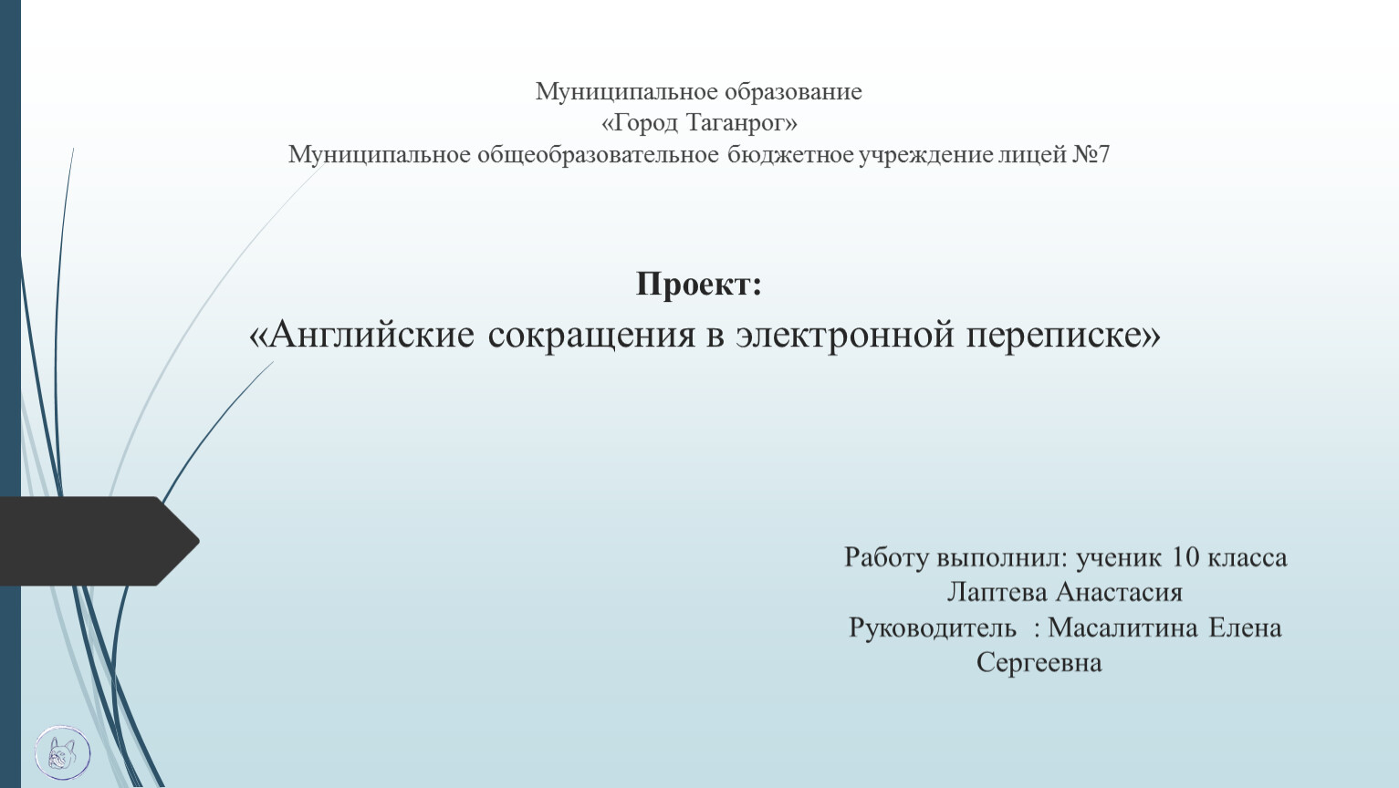 Муниципальное образование«Город Таганрог»Муниципальное общеобразовательное бюджетное учреждение лицей №7