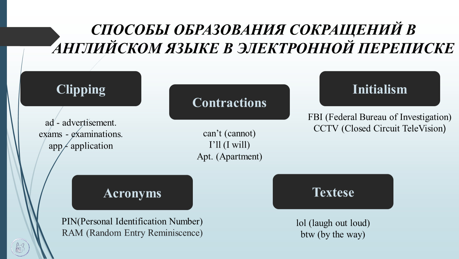 СПОСОБЫ ОБРАЗОВАНИЯ СОКРАЩЕНИЙ В АНГЛИЙСКОМ ЯЗЫКЕ В ЭЛЕКТРОННОЙ ПЕРЕПИСКЕ