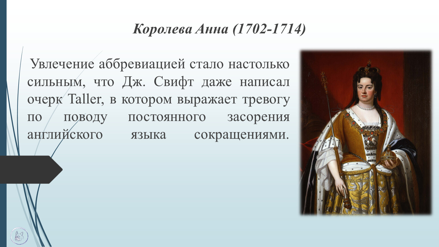 Увлечение аббревиацией стало настолько сильным, что Дж. Свифт даже написал очерк Taller, в котором выражает тревогу по поводу постоянного засорения английского языка сокращениями.