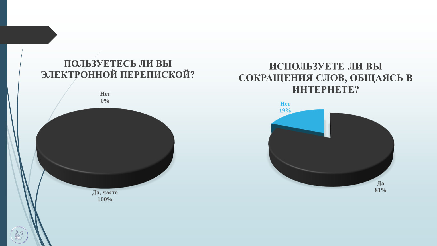 Интернет общение - это особое общение, которое требует особого языка. Интернет-сленг очень распространен и постоянно меняется. Человек, который проводит много времени в Интернете, встречает странные и непонятные для него сокращения. Для того чтобы вести электронную переписку, быть мобильным, т.е. быстро отвечать, сообщать необходимую информацию, при этом мы часто это делаем на бегу, поэтому нам и приходится использовать сокращения.