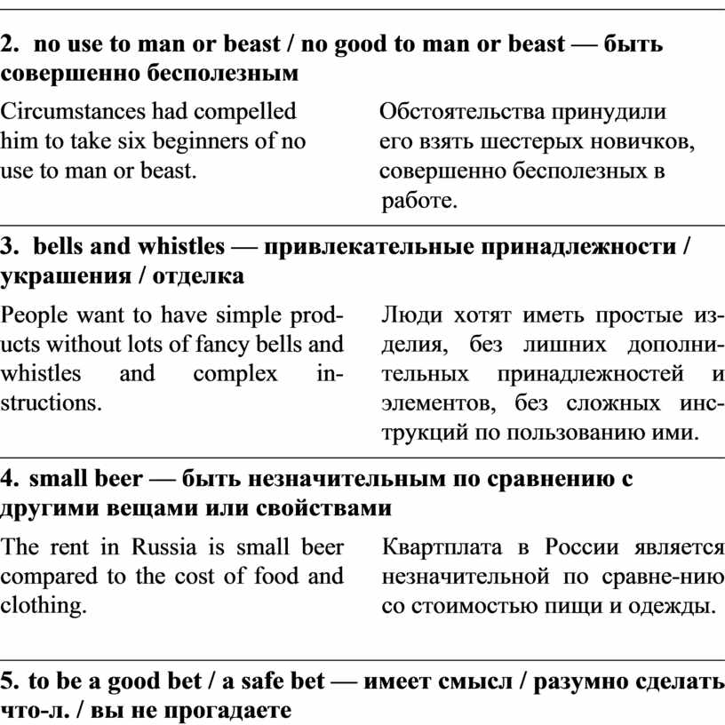 4. small beer — быть незначительным по сравнению с другими вещами или свойствами