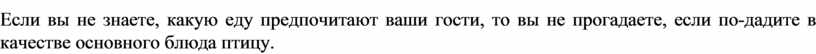 Если вы не знаете, какую еду предпочитают ваши гости, то вы не прогадаете, если по-дадите в качестве основного блюда птицу.