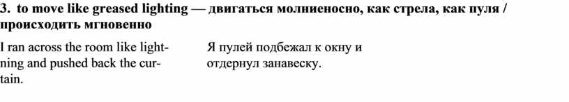 3. to move like greased lighting — двигаться молниеносно, как стрела, как пуля / происходить мгновенно