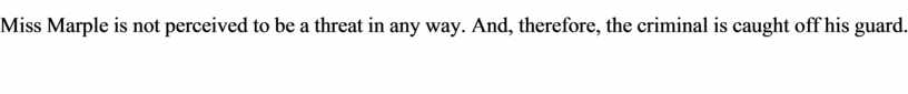 Miss Marple is not perceived to be a threat in any way. And, therefore, the criminal is caught off his guard.