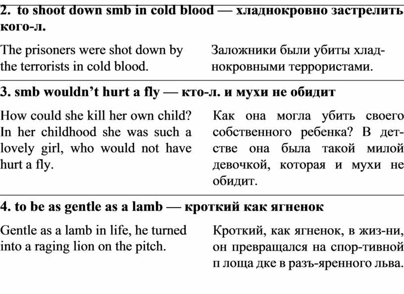 3. smb wouldn’t hurt a fly — кто-л. и мухи не обидит