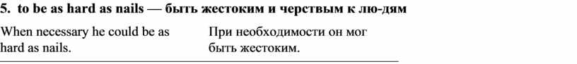 5. to be as hard as nails — быть жестоким и черствым к лю-дям