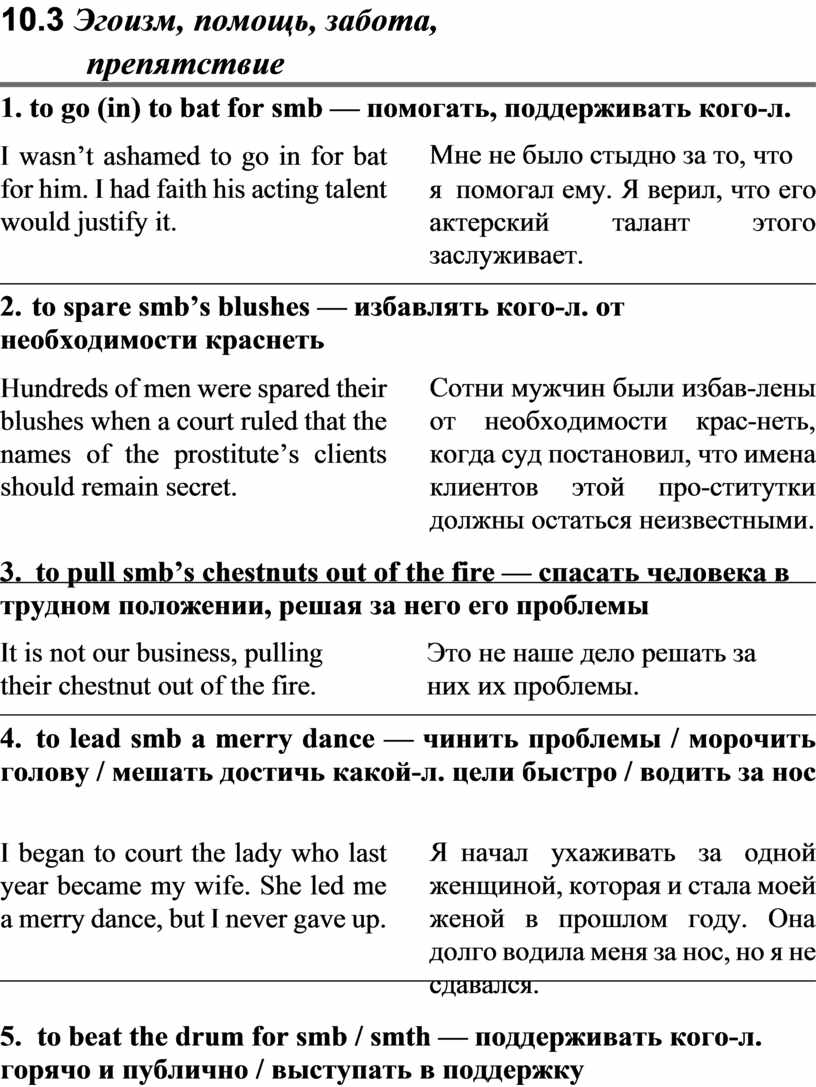 10.3 Эгоизм, помощь, забота, препятствие