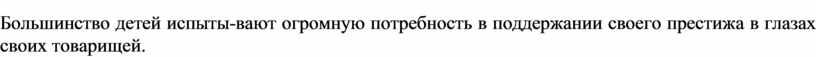 Большинство детей испыты-вают огромную потребность в поддержании своего престижа в глазах своих товарищей.