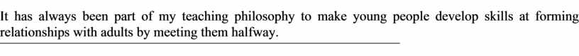 It has always been part of my teaching philosophy to make young people develop skills at forming relationships with adults by meeting them halfway.