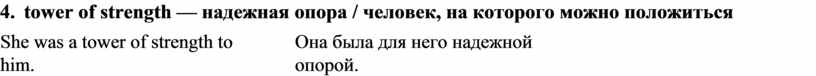 4. tower of strength — надежная опора / человек, на которого можно положиться
