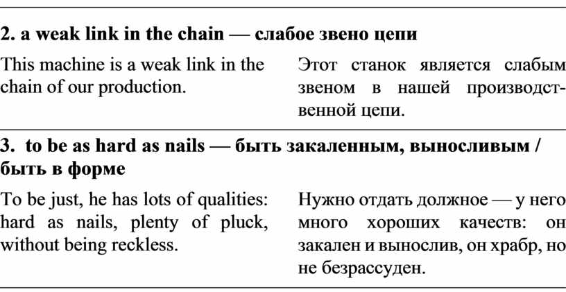 3. to be as hard as nails — быть закаленным, выносливым / быть в форме