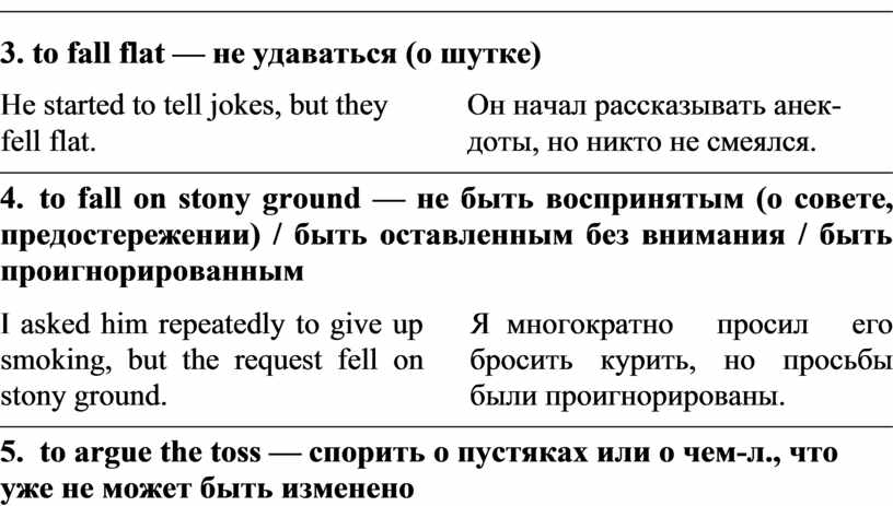 2. to fall on deaf ear — не быть услышанным / не быть вос-принятым / не привлечь внимания