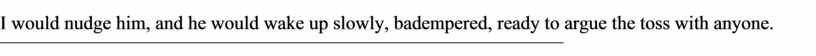 I would nudge him, and he would wake up slowly, badempered, ready to argue the toss with anyone.