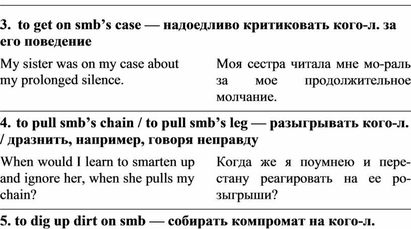 4. to pull smb’s chain / to pull smb’s leg — разыгрывать кого-л. / дразнить, например, говоря неправду