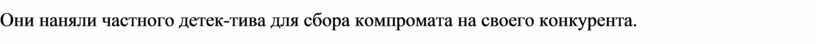 Они наняли частного детек-тива для сбора компромата на своего конкурента.