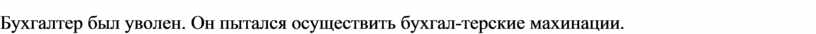 Бухгалтер был уволен. Он пытался осуществить бухгал-терские махинации.