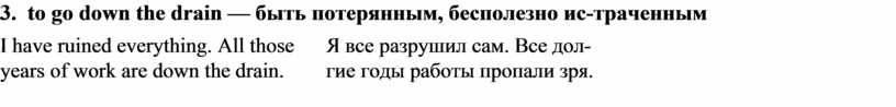 3. to go down the drain — быть потерянным, бесполезно ис-траченным