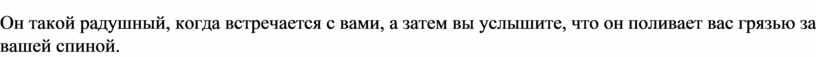 Он такой радушный, когда встречается с вами, а затем вы услышите, что он поливает вас грязью за вашей спиной.
