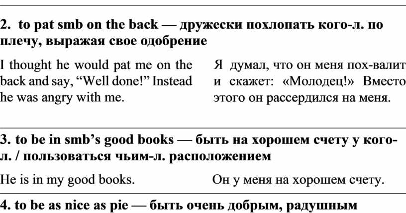 3. to be in smb’s good books — быть на хорошем счету у кого-л. / пользоваться чьим-л. расположением
