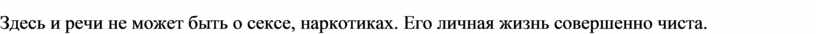 Здесь и речи не может быть о сексе, наркотиках. Его личная жизнь совершенно чиста.