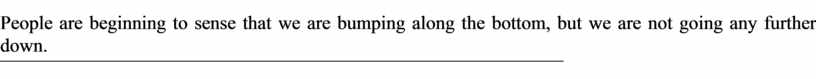 People are beginning to sense that we are bumping along the bottom, but we are not going any further down.
