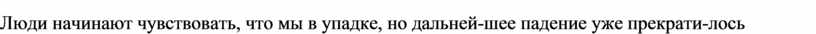 Люди начинают чувствовать, что мы в упадке, но дальней-шее падение уже прекрати-лось