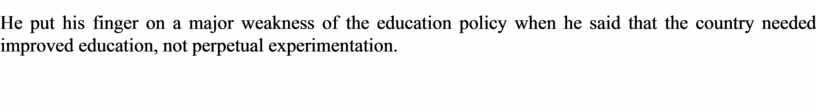 Не put his finger on a major weakness of the education policy when he said that the country needed improved education, not perpetual experimentation.