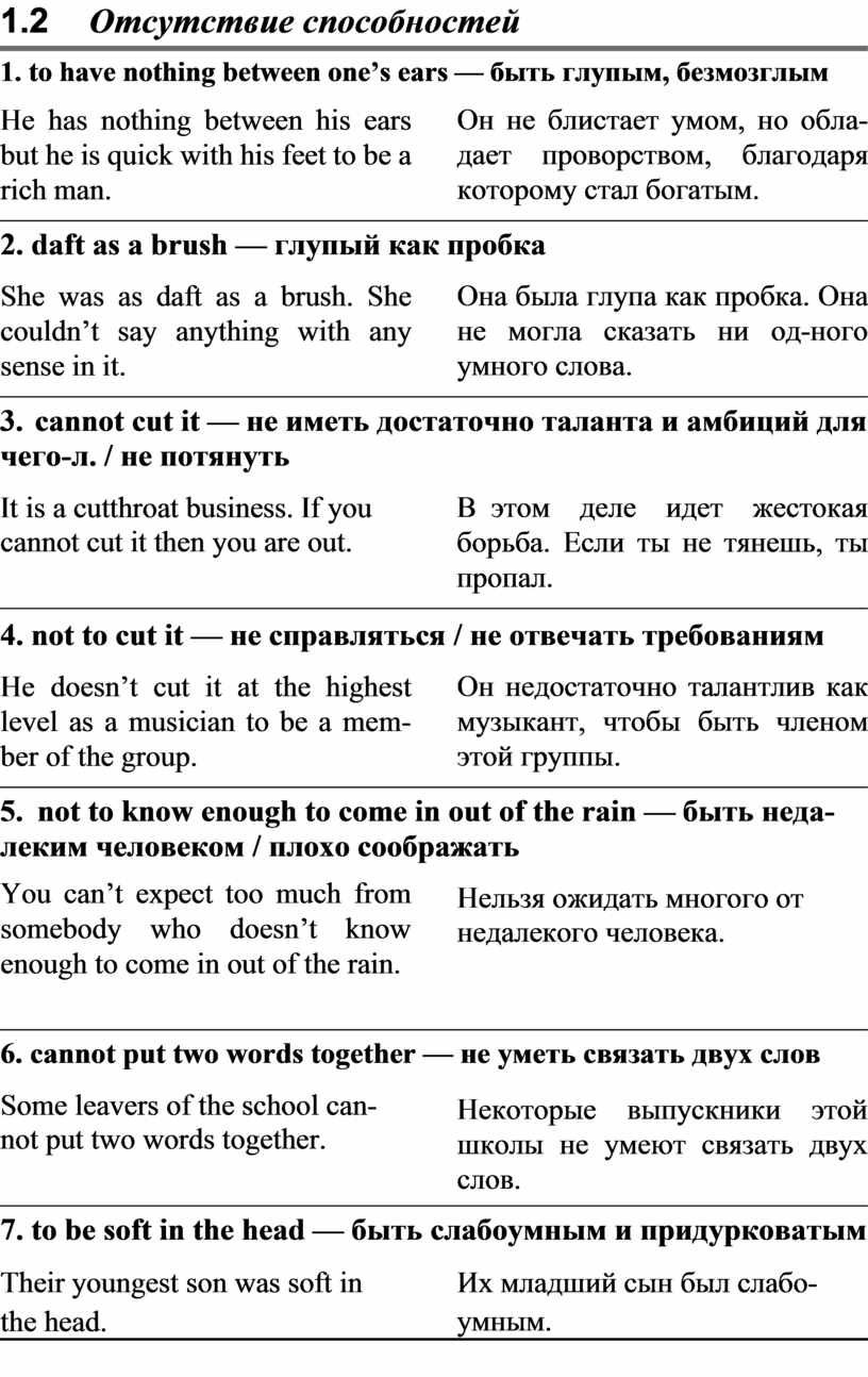 6. cannot put two words together — не уметь связать двух слов