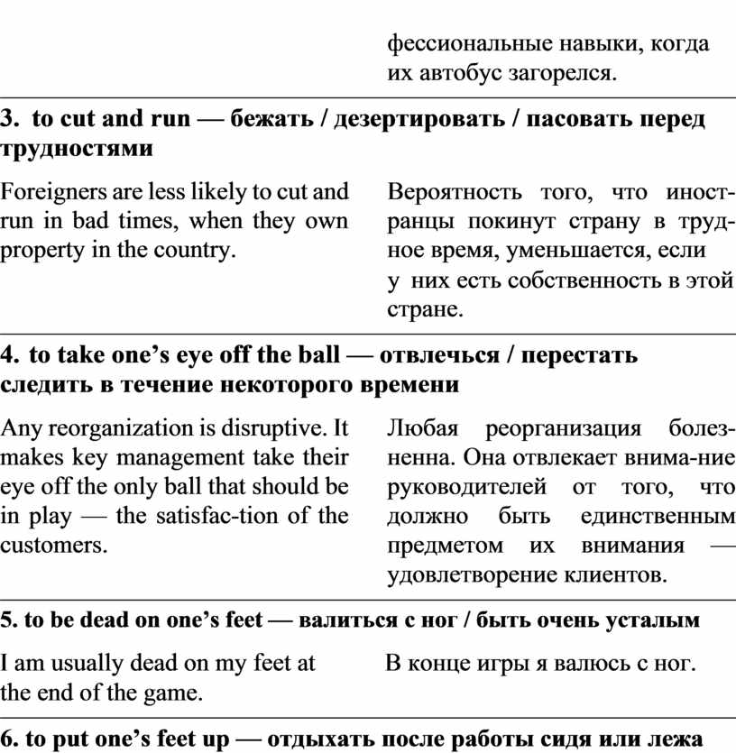 6. to put one’s feet up — отдыхать после работы сидя или лежа