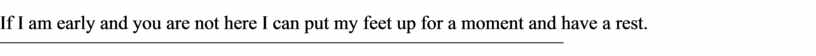 If I am early and you are not here I can put my feet up for a moment and have a rest.