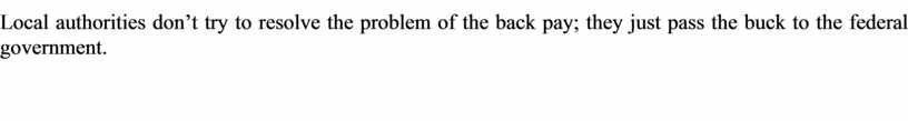 Local authorities don’t try to resolve the problem of the back pay; they just pass the buck to the federal government.