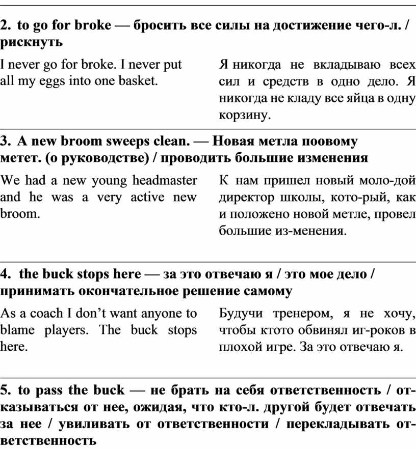 5. to pass the buck — не брать на себя ответственность / от-казываться от нее, ожидая, что кто-л. другой будет отвечать за нее / увиливать от ответственности / перекладывать от-ветственность