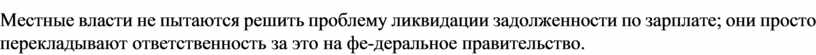 Местные власти не пытаются решить проблему ликвидации задолженности по зарплате; они просто перекладывают ответственность за это на фе-деральное правительство.
