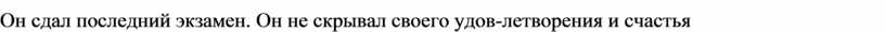 Он сдал последний экзамен. Он не скрывал своего удов-летворения и счастья