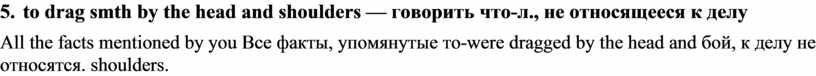 5. to drag smth by the head and shoulders — говорить что-л., не относящееся к делу