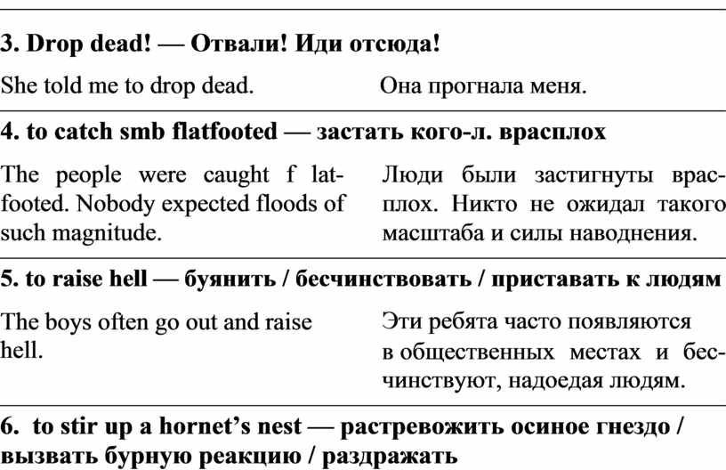 5. to raise hell — буянить / бесчинствовать / приставать к людям