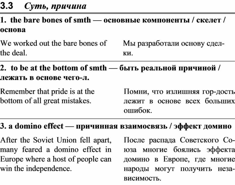 3. a domino effect — причинная взаимосвязь / эффект домино