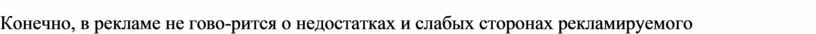 Конечно, в рекламе не гово-рится о недостатках и слабых сторонах рекламируемого