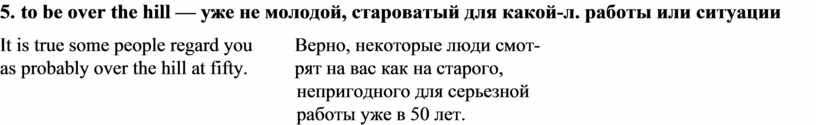 5. to be over the hill — уже не молодой, староватый для какой-л. работы или ситуации