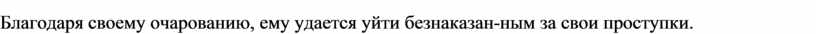 Благодаря своему очарованию, ему удается уйти безнаказан-ным за свои проступки.